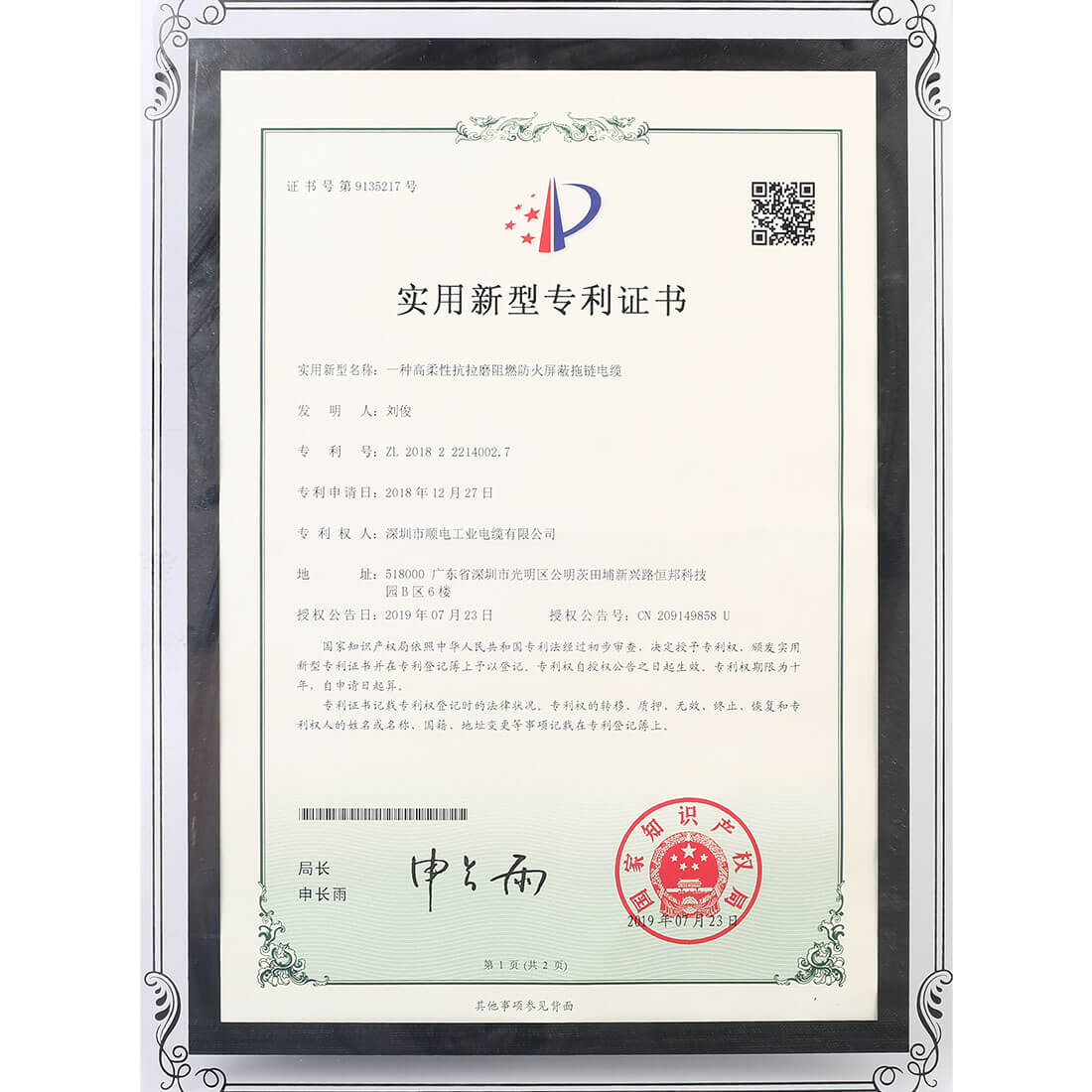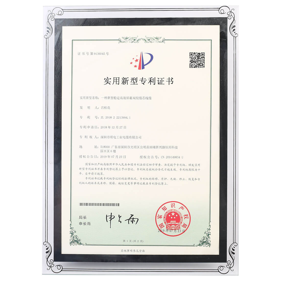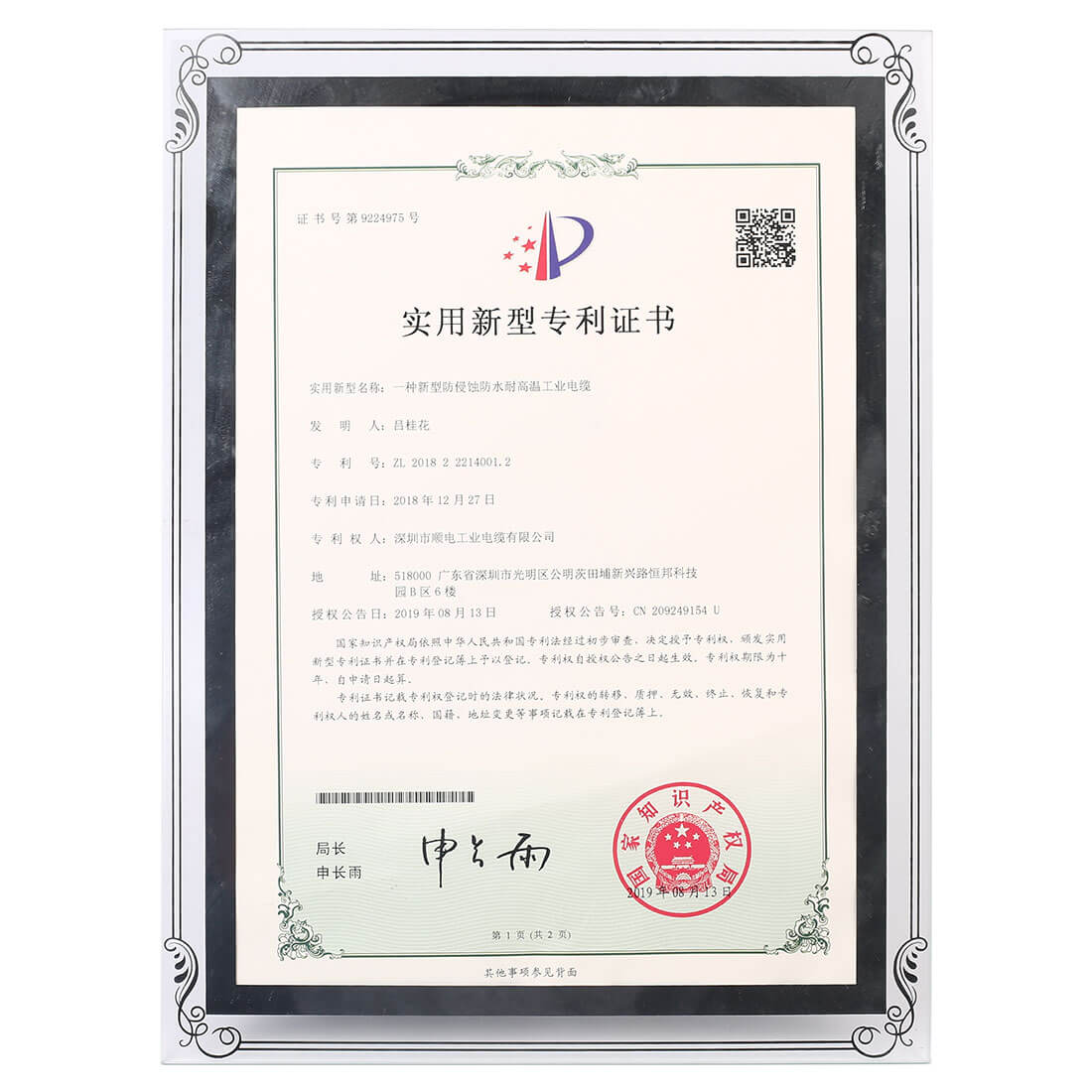 實(shí)用新型專利證書