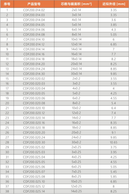 彎曲半徑 : 非拖鏈內(nèi)運(yùn)動(dòng):5.0X電纜外徑