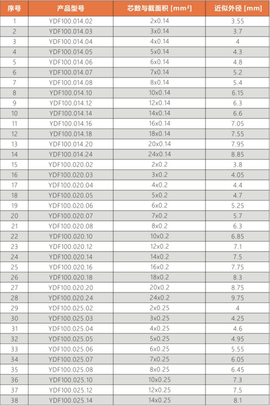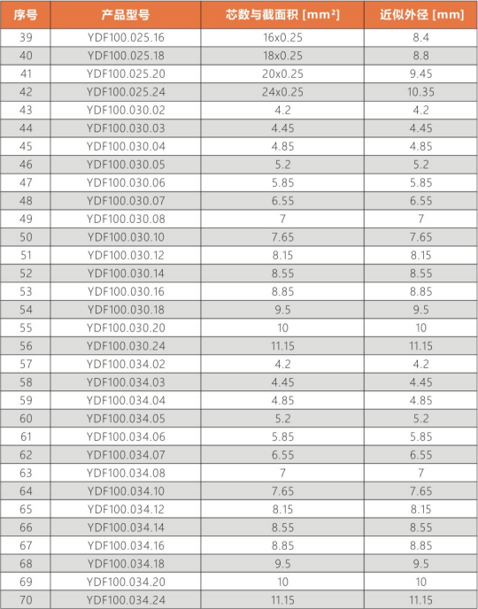 彎曲半徑 : 非拖鏈內(nèi)運(yùn)動(dòng):10.0X電纜外徑