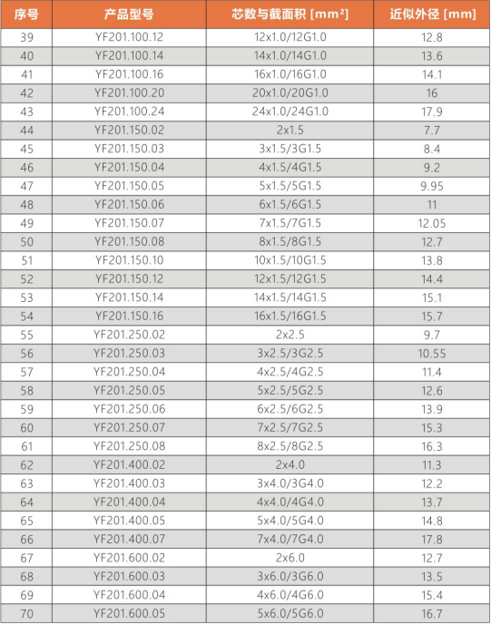 使用溫度范圍 : 非拖鏈內運動:-35 ℃ 至 80 ℃